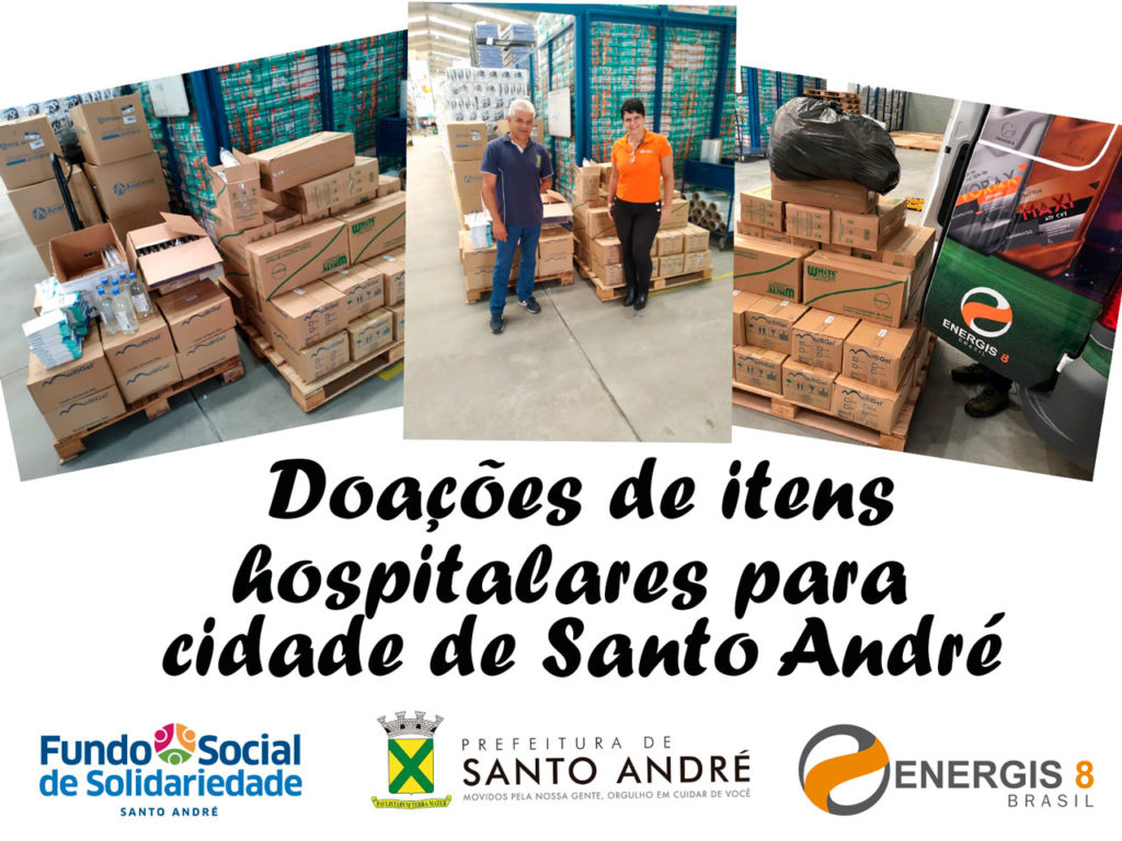 O Grupo Energis 8 Brasil efetuou em 16/04 a doação de uma grande quantidade de itens de uso hospitalar para o fundo de solidariedade de Santo André, que serão distribuídos em todos os hospitais da rede pública da cidade, além dos hospitais campanha criados contra o COVID-19.